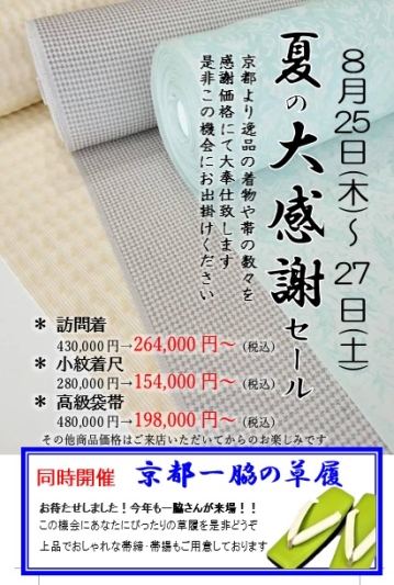• 夏の大感謝セール 8月25日(木)~27日(土)