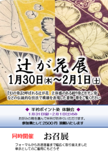 辻が花展 1月30日㈭~2月1日㈯