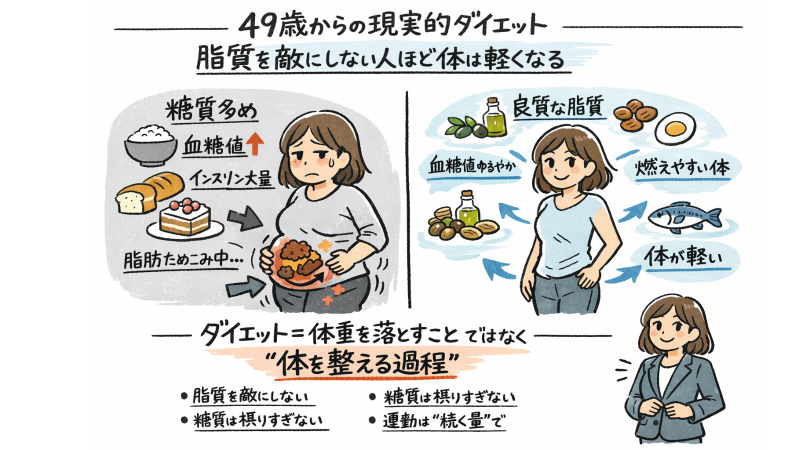 ✔ 脂を避けている人ほど回復が遅い