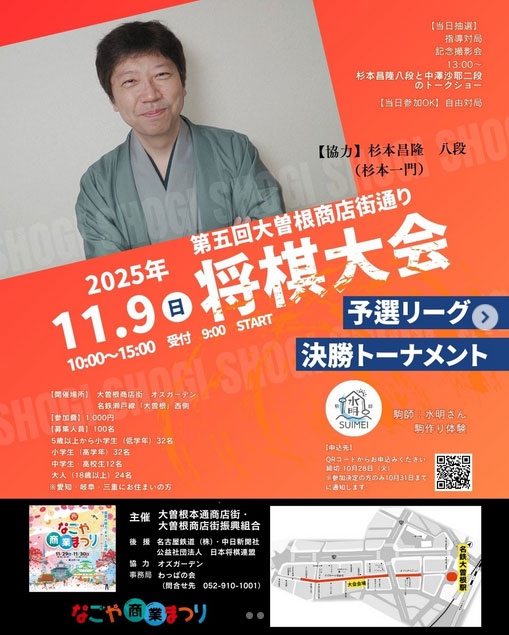 商店街にゆかりのある藤井八冠を育てた杉本八段をお迎えし、杉本門下生による指導対局やトークショーを交えた将棋大会を開催します。