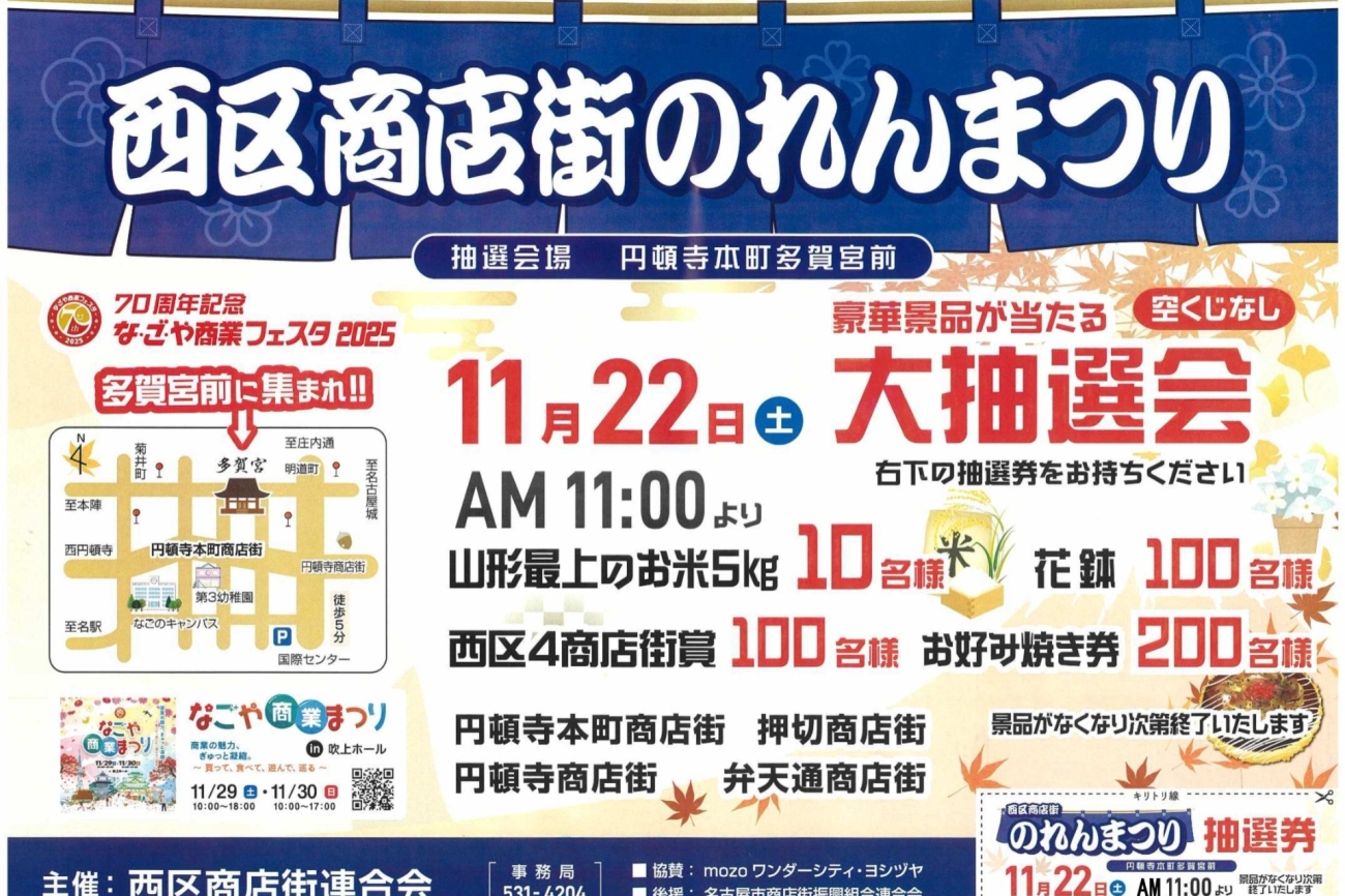 西区商店街のれんまつりの抽選会は11月22日 AM11:00からです。景品がなくなり次第終了いたします。