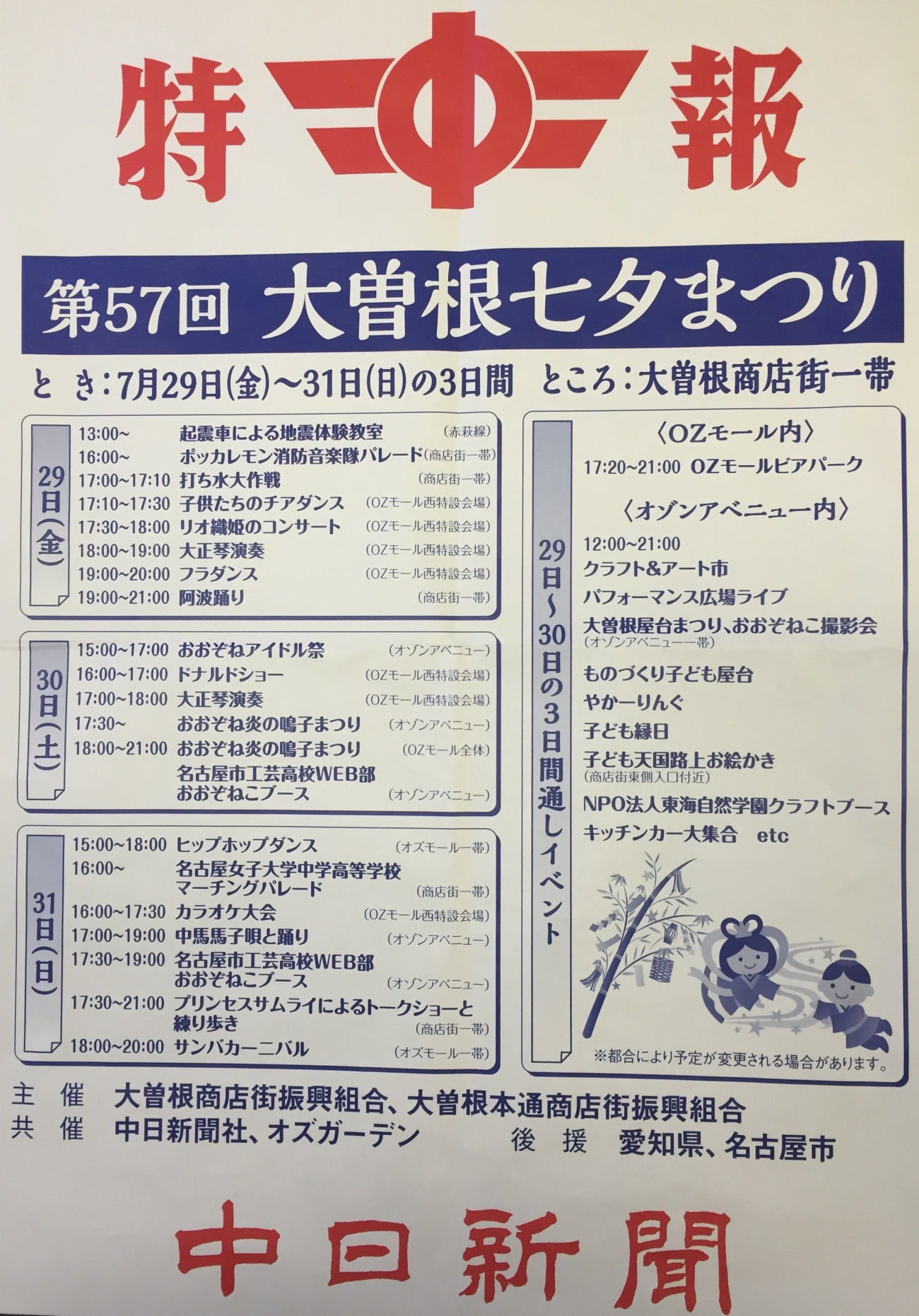 7月29日~7月31日は大曽根で飲んで・食べて・遊んで! 催し物が盛りだくさん。 OZモール(大曽根商店街)・オゾンアベニュー(大曽根本通商店街)で楽しみましょう。