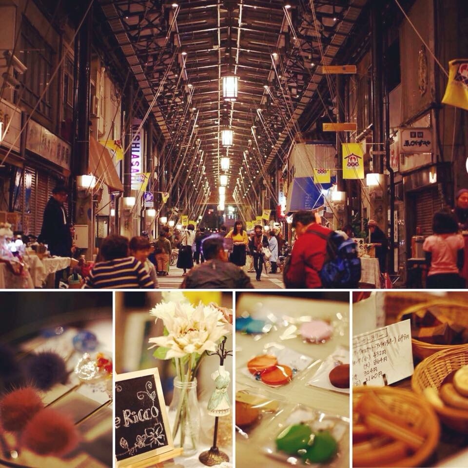 夜の円頓寺商店街に、ハンドメイドやアンティークのお店が並びます!