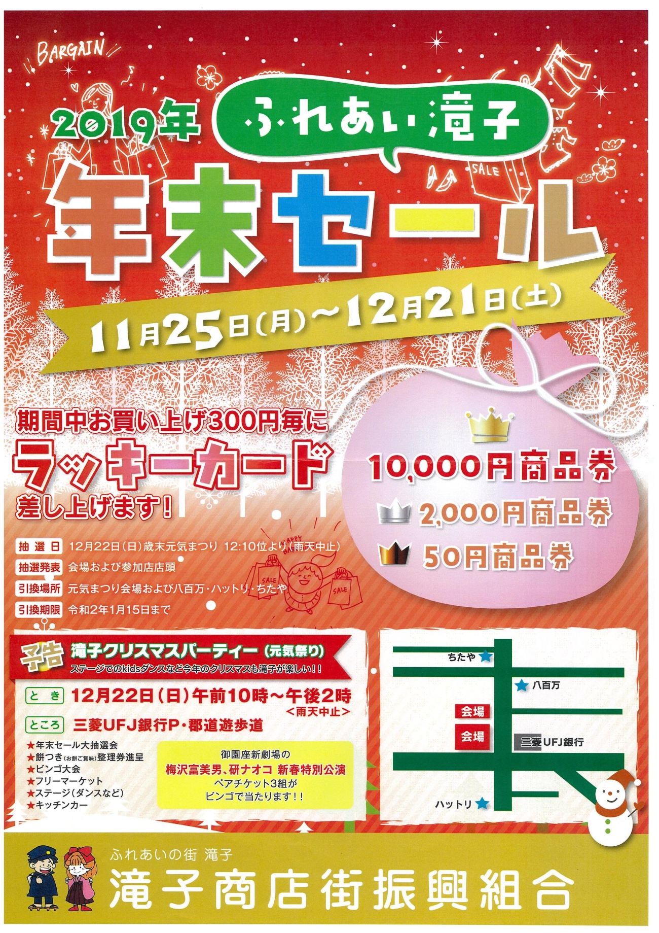 期間:11月25日(月)~12月21日(土) お買上げ300円毎にラッキーカードを差し上げあげます。 22日(日)に年末セールの大抽選会や餅つき大会、ビンゴ大会を開催。 ビンゴで御園座新春特別公演のペアチケットが当たる! フリーマーケットやダンスなどのステージ、キッチンカーも来るよ!
