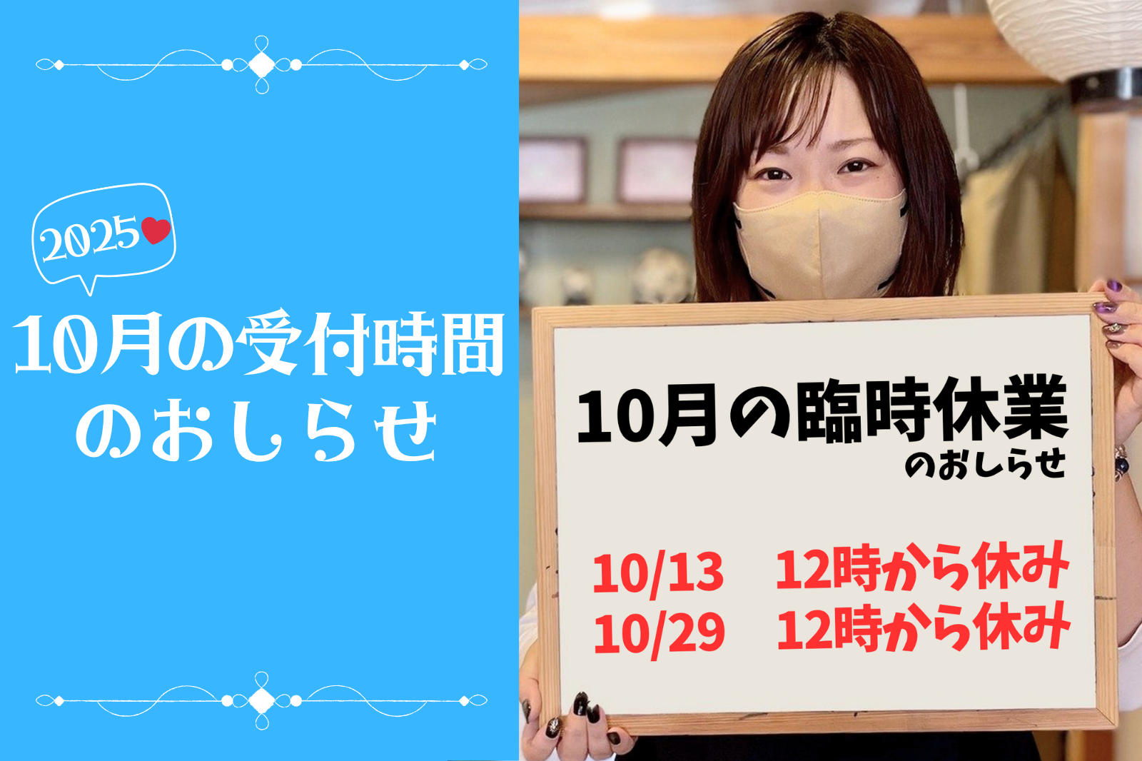 受付時間のお知らせ【2025年10月】
