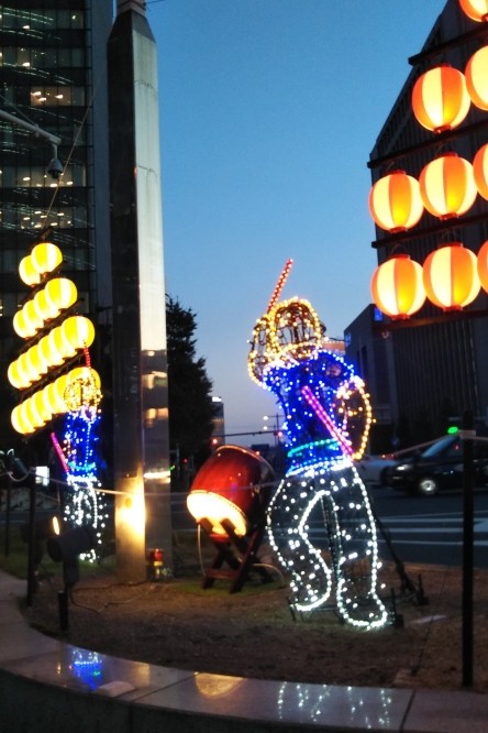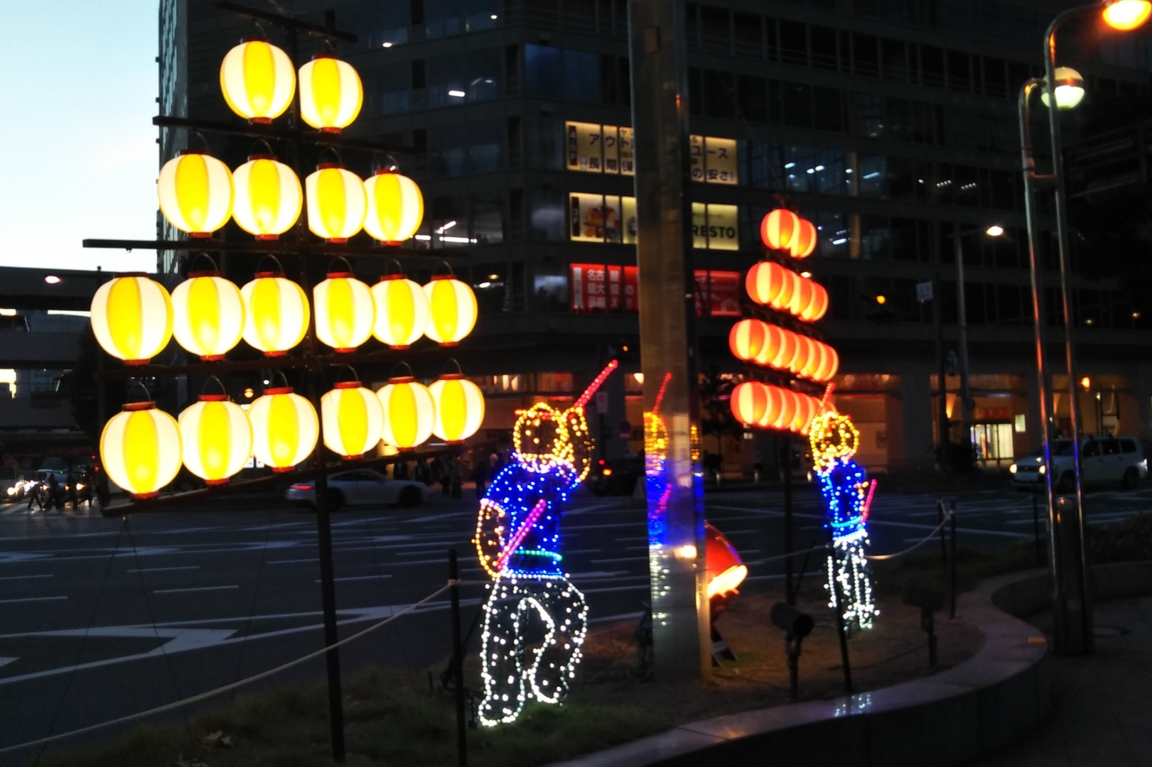 7月以降~冬季にかけてイルミネーションが灯ります。モード学園の学生さんのデザインによる光のオブジェも設置され、商店街を鮮やかに彩ります。